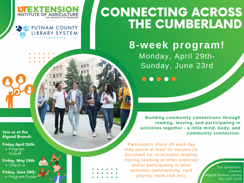 Connecting Across the Cumberland - Kick Off: Algood Branch - Fri, Apr 26, 2024 11:15am - 12:15pm @ The Algood Branch Library
