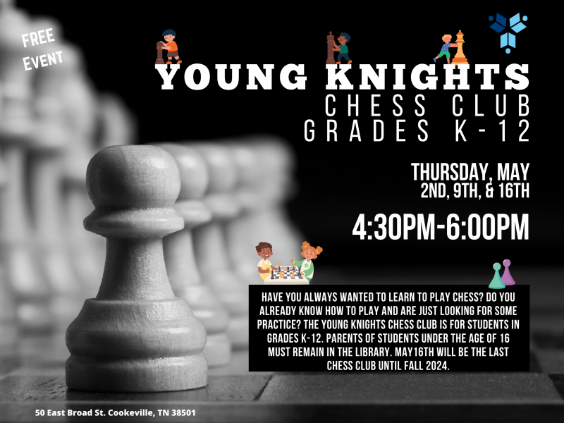 Young Knights Chess Club: Grades K-12 - Thu, May 2, 2024 4:30pm - 6:00pm @ Putnam County Library
